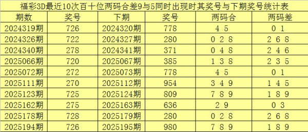开奖归来:福彩3D第2025266期开出奖号723,其中奖号奇偶比为2:1,大小比为1:2,012路比为1:1:1,和值为12FIFA买球网体育信息,跨度为5。 福彩3D第2025267期奖号两码合差分析: 百十位合差分析:上期奖号百十位开出72组合,两码合为9,两码差为5,最近10次百十位两码合9与两码差5同期出面前,其奖号和下期奖号离别为: 从以上统计不...
