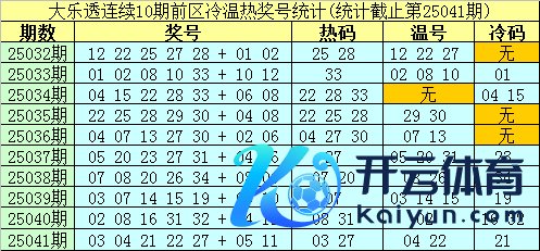 大乐透第25032期-第25041期前区奖号冷温热散布统计: