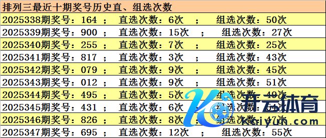 开奖讲究:罗列三2025347期开奖:695,组六,和值20,跨度4,奇偶比2:1,大小比3:0。