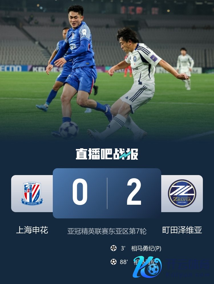 2月11日讯 亚冠精英联赛东亚区第7轮,上海申花主场0-2不敌町田泽维亚。