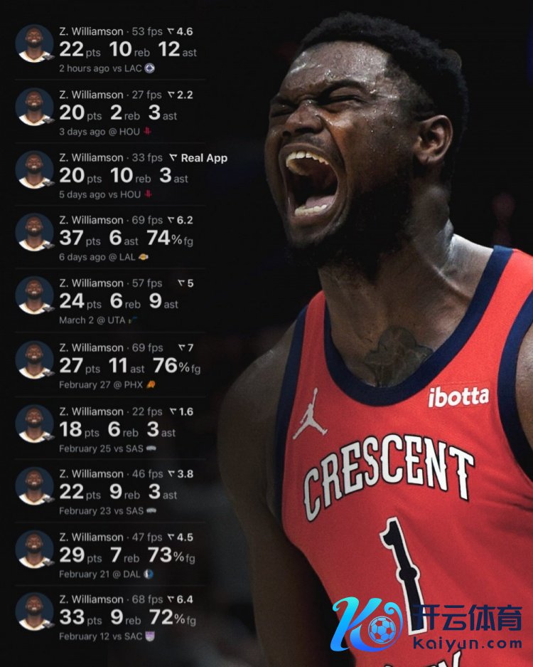 锡安本场比赛砍下糊口第二个三双,他出战32分34秒,13投8中,罚球6中6,砍下22分10篮板12助攻(助攻糊口新高)1盖帽。